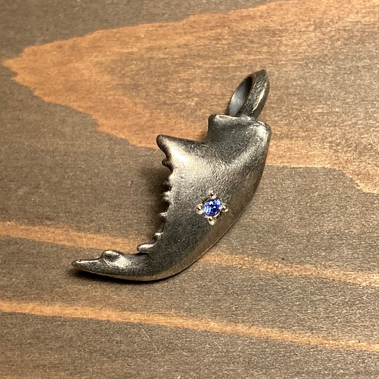 スマトラオオヒラタクワガタ 石入り左アゴペンダント (ブルー)