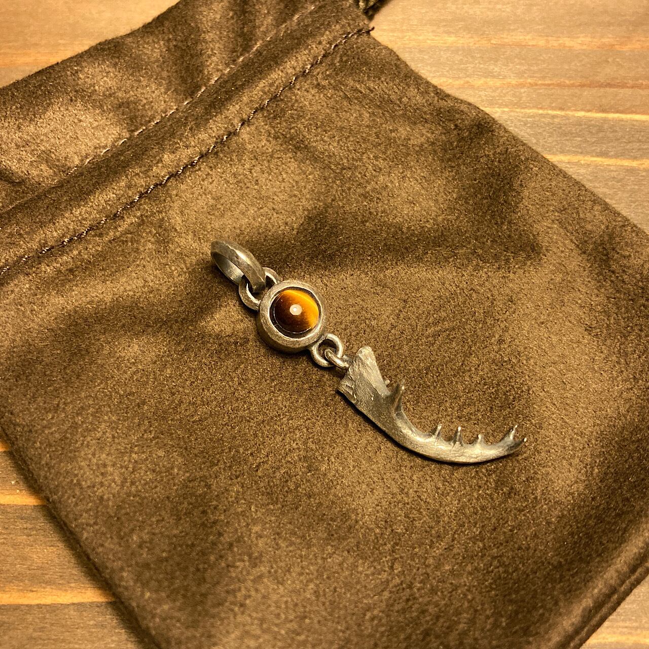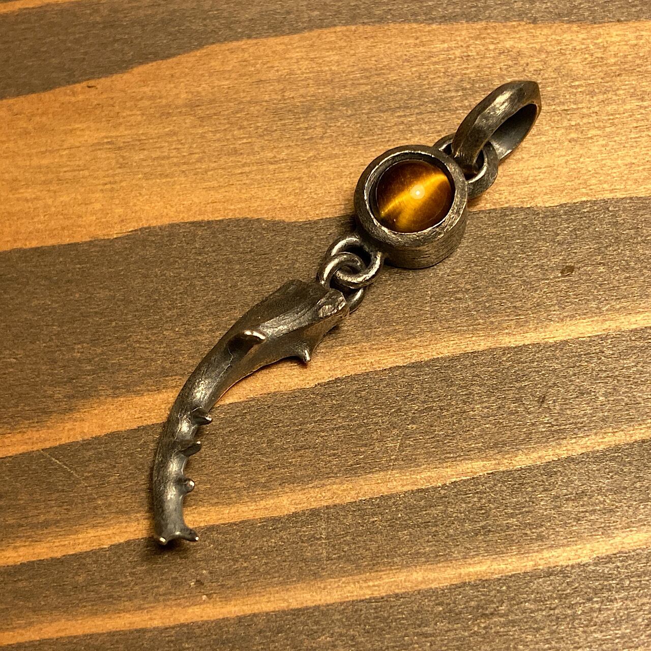 ミヤマクワガタ 石台シングル右アゴペンダント (タイガーアイ)