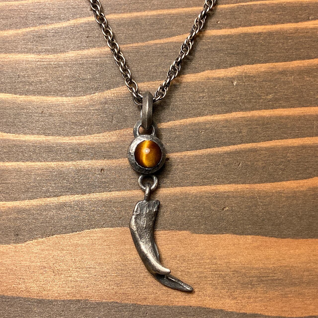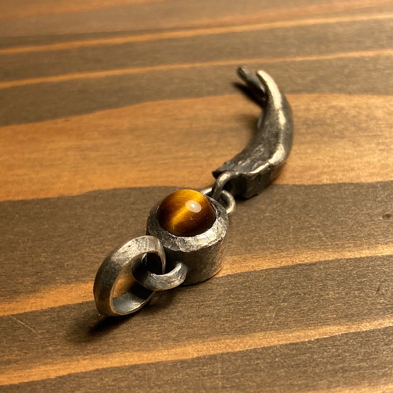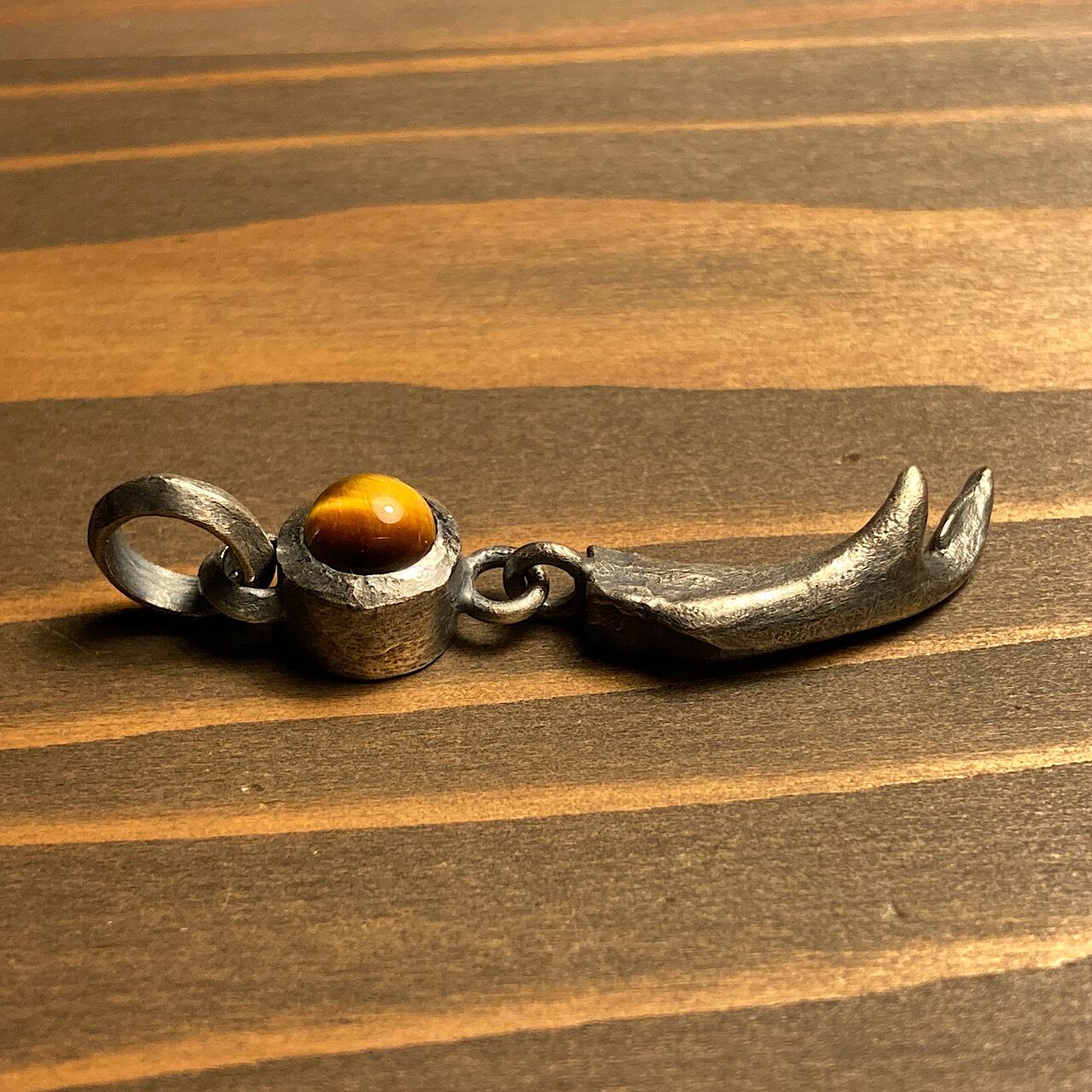オオクワガタ 石台シングル右アゴペンダント (タイガーアイ)