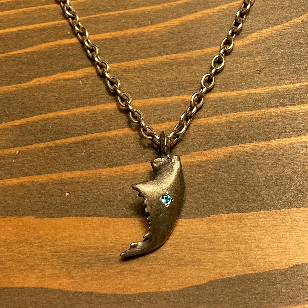 スマトラオオヒラタクワガタ 石入り左アゴペンダント (ウォーターブルー)